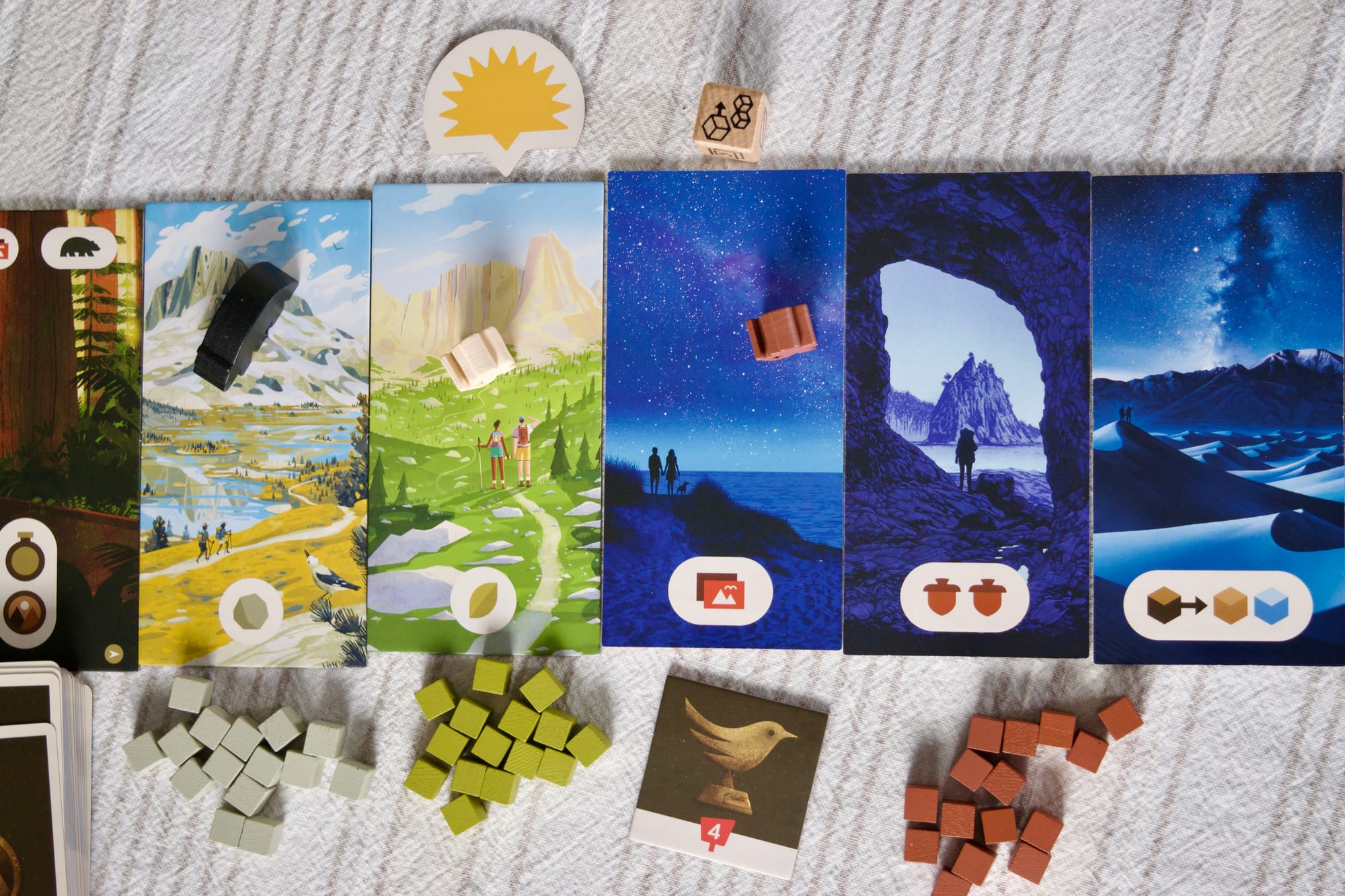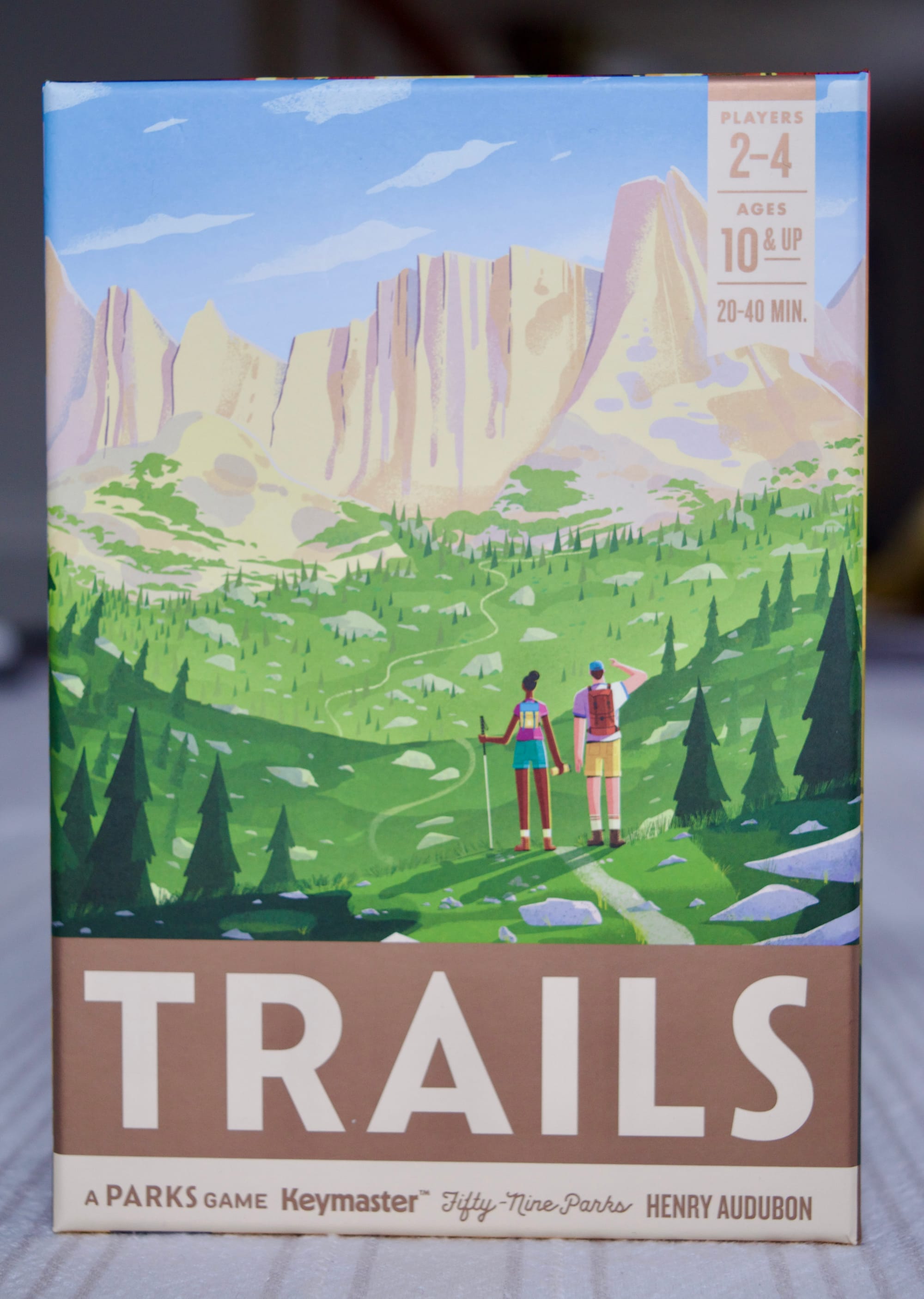 Trails is a a simplified and paired down version of Parks. I think I prefer parks just a bit more especially because it includes a bunch of incredible artwork from 59 Parks. Trails still maintains a very nice presence and plays a lot quicker. If you want a relatively cheap and eye catching game about traversing beautiful scenic trails, pick this up.